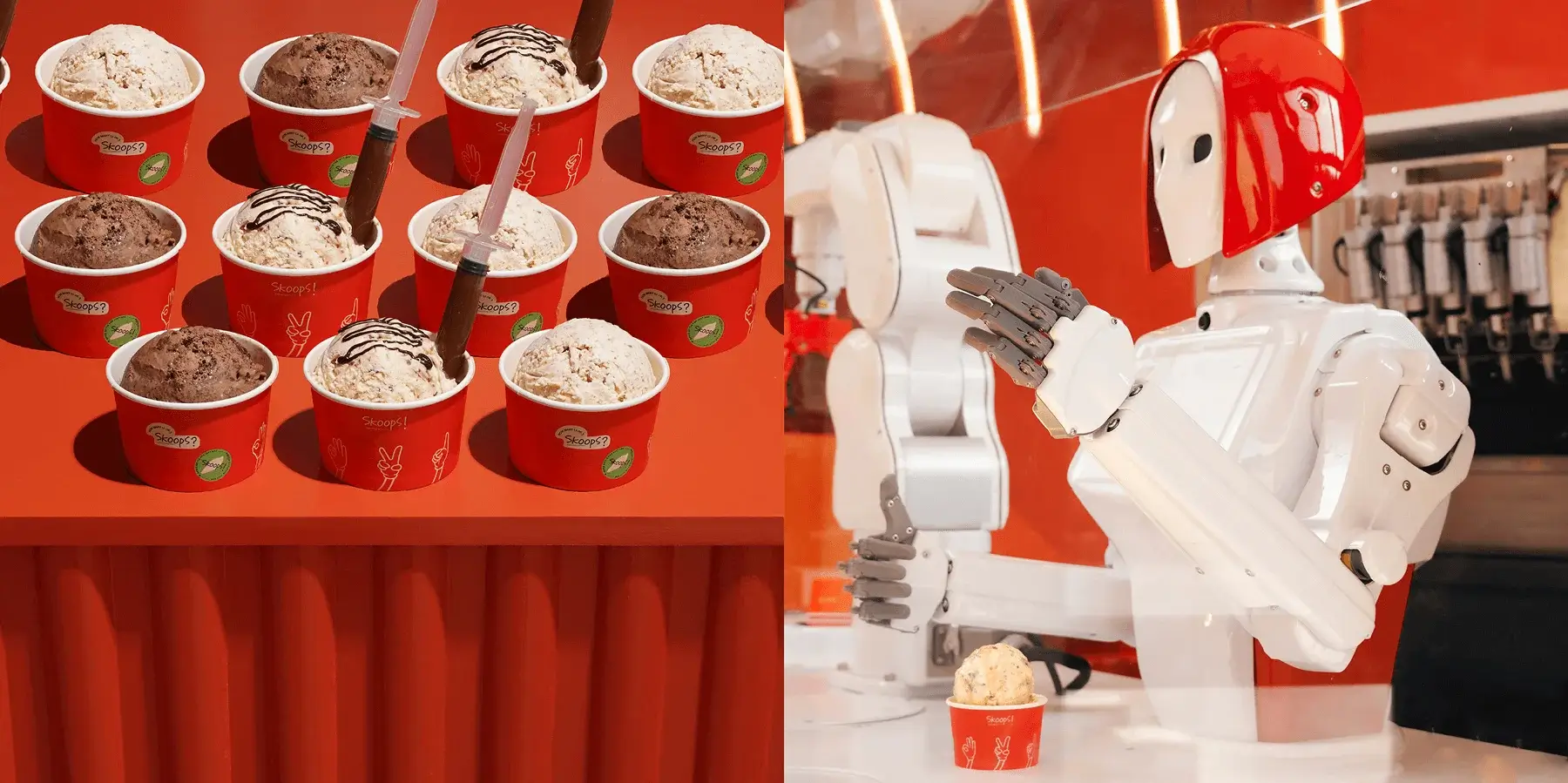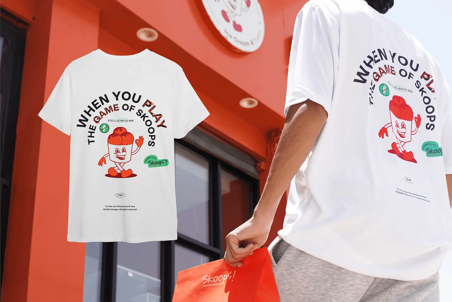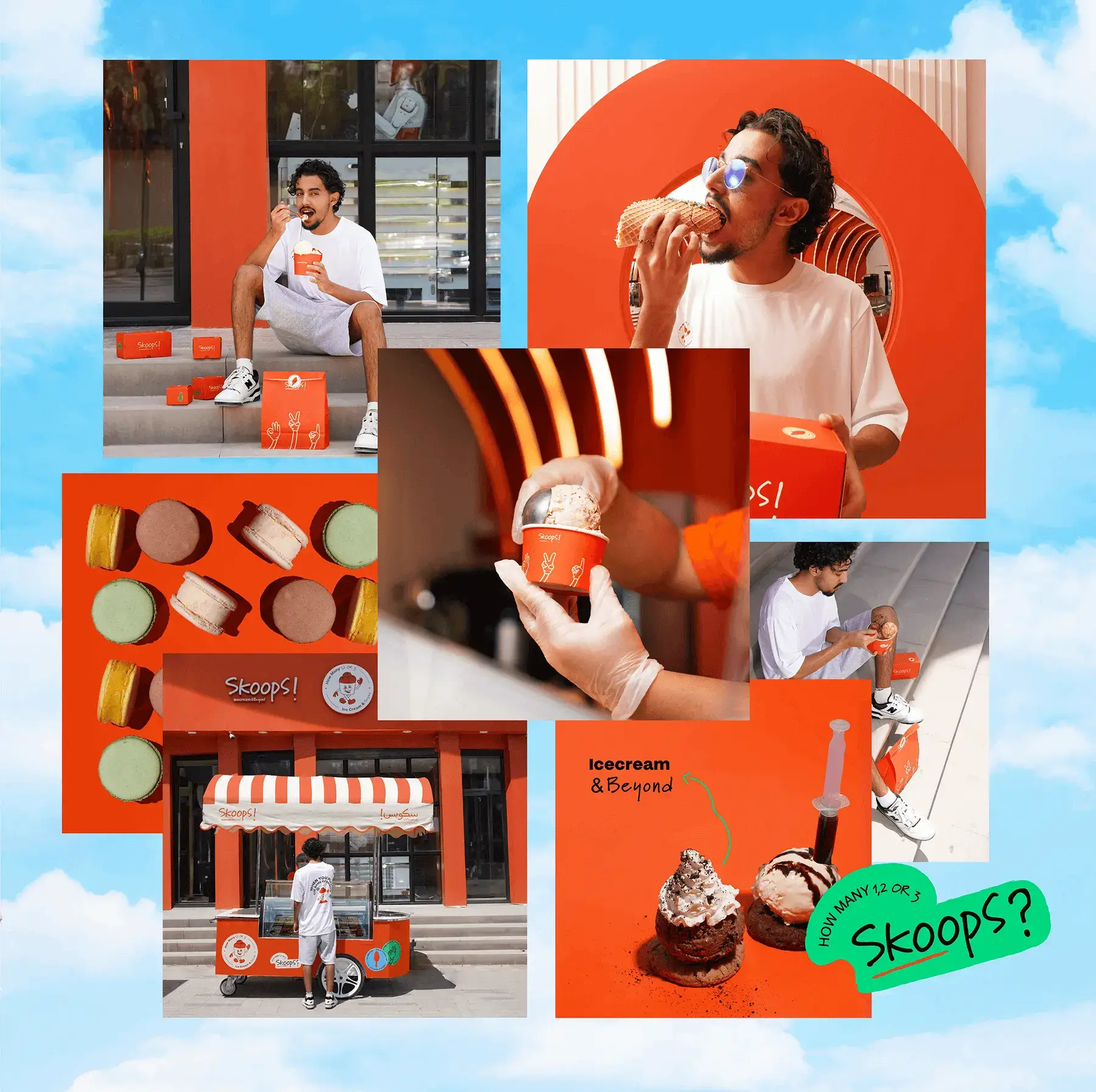 A playful ice cream character with three scoops, offers a vibrant and welcoming atmosphere.